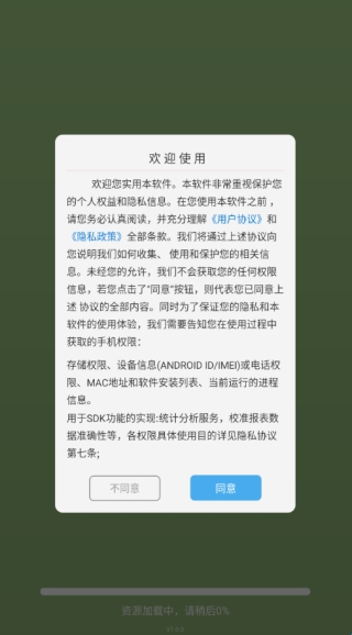 1、打开软件app,可以看到软件的欢迎页面,点击下方的同意进入软件。