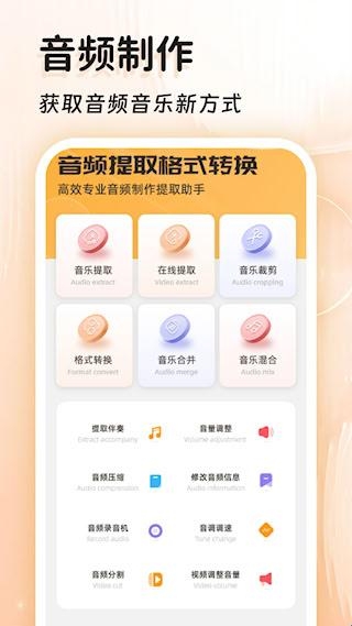 2、 功能多样:除了音频提取,还提供音频剪辑、合并、格式转换等丰富功能,满足用户多种音频处理需求。
