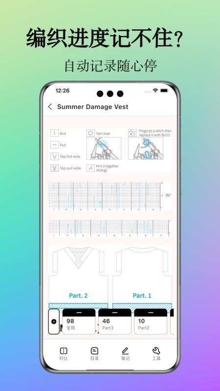 2、自动记录:对用户的编织进度也会自动记录下来,智能记录相关的笔记,轻松解放用户的双手。