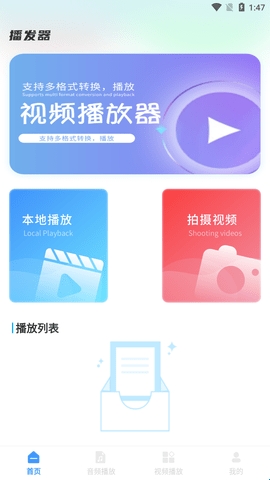 1、支持多格式转换,播放,本地视频和拍摄视频都可以。