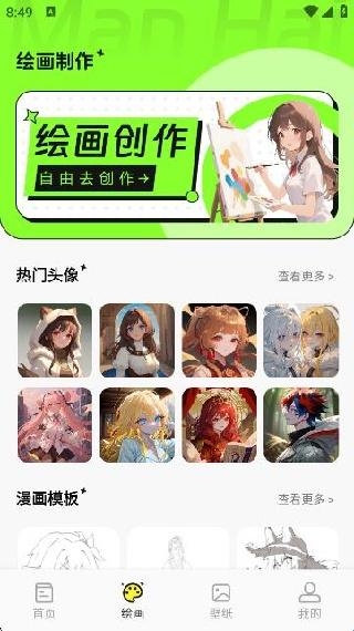 3、在绘画板块让你自由的去创作,还有很多的模板能够筛选;
