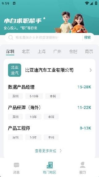 2、首页会有很多的优质岗位为你推荐,不同地区划分详细;