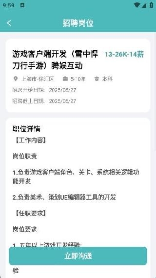 4、点击查看自己感兴趣的岗位,有任何的问题可以立即沟通。