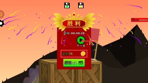4、成功到达终点后,会显示【胜利】界面,可点击【下一关】继续挑战,还能获得【奖励15】的金币。