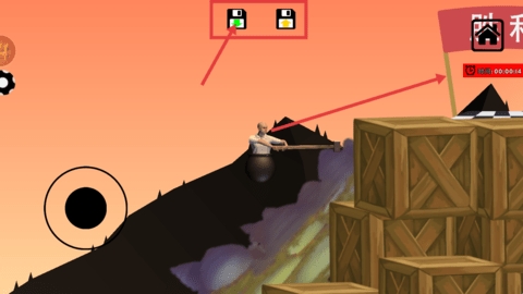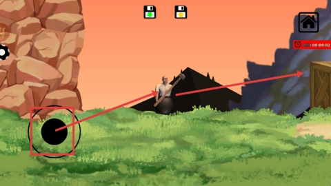 2、操控角色利用锤子,从黑色圆点处发力,朝着木箱方向移动,开始关卡挑战。