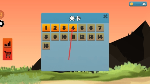 1、进入游戏后,在【关卡】界面选择要挑战的关卡,像图中选中【4】关卡,即可开启对应挑战。