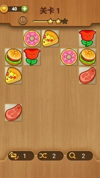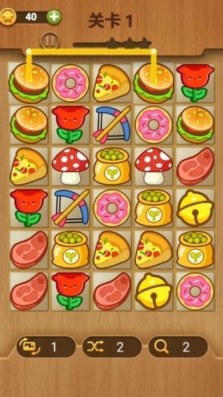 2、从关卡1开始挑战,寻找相同的图标,将其连接进行消除。