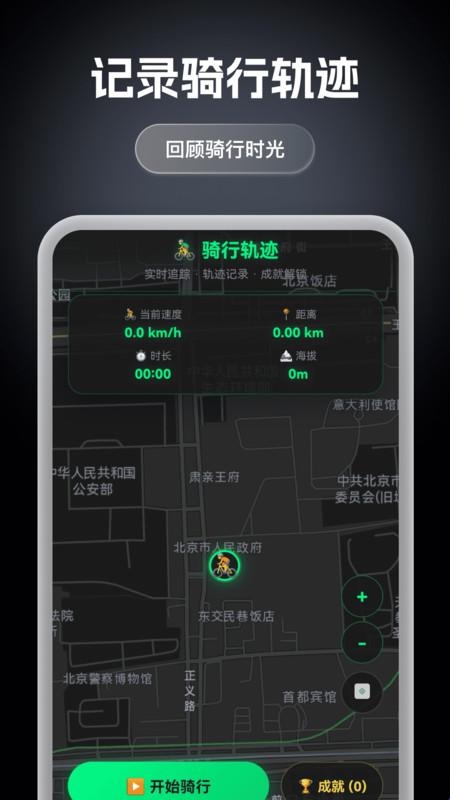 3、轨迹记录:将你的骑行路线可视化,方便回顾与分享。