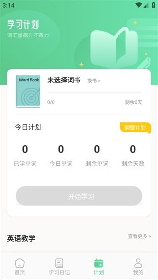 3、选择词书,制定英语学习计划,每天学习的情况一目了然;