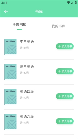 4、有丰富的词书任你选择,随时添加词书,制定高效学习计划。