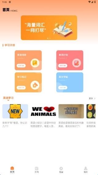 1、首页展示了丰富单词学习方式,在单词计划板块就能完成每日记忆任务。