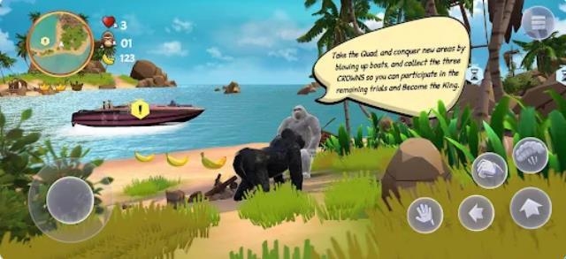 1、在岛屿中自由探索,收集香蕉和皇冠,这些不仅是冒险中的奖励,也是解锁新角色和技能的关键资源。