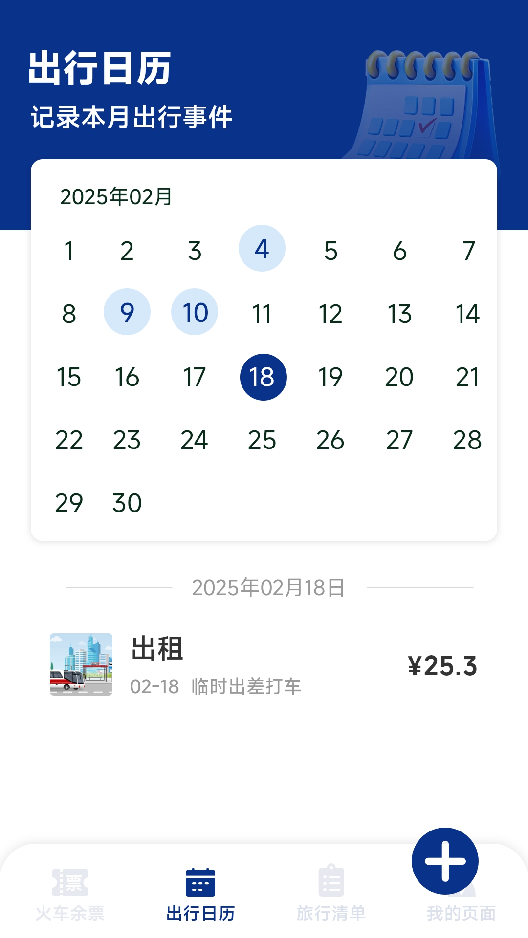 4、出行日历:用户可以一键查询出行日历,对自己的出行可以实时记录下来,轻松记录本月的出行事件。