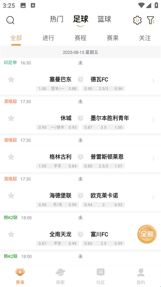 4、下方赛事板块里,展示了详细的赛程列表,不论是大兴联赛还是小型比赛都有。