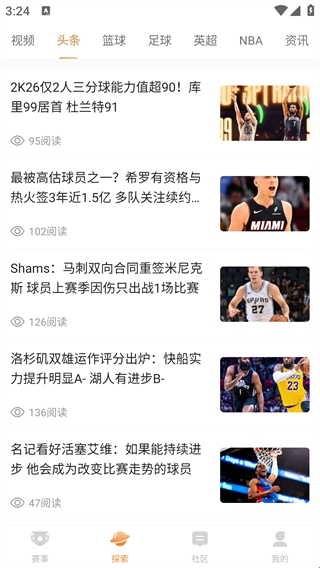 3、头条板块包含了最新的一些资讯新闻,包含比赛、交易等;