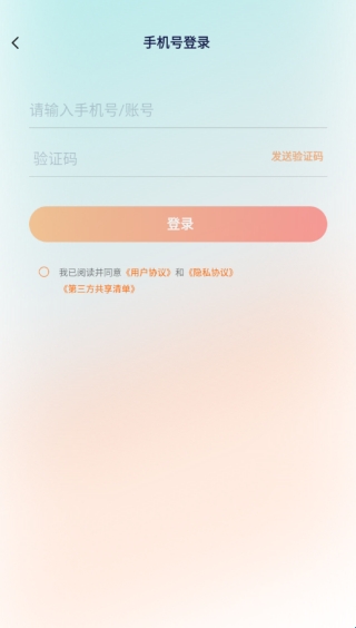 2、来到软件登录页面,输入手机号和验证码点击登录即可进入主页。