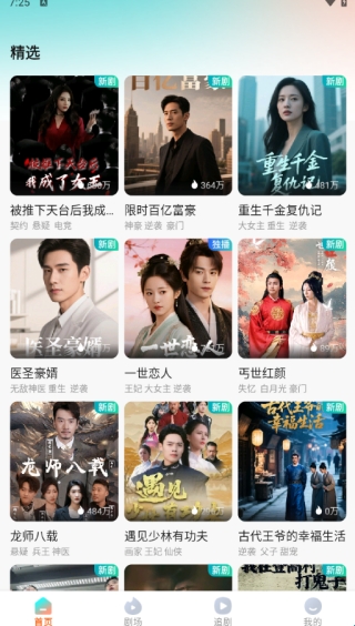 3、来到软件主页,可查看软件精选的各种精品短剧。