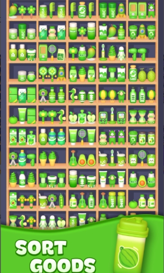 1、玩家需要通过移动或交换屏幕货柜上的货物,使三个或三个以上相同元素连成一线。