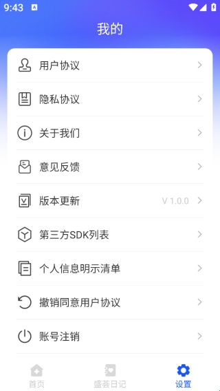 4、点击【设置】进入,可以查看详细的软件信息并且进行意见反馈。