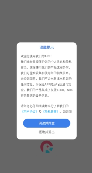 1、用户下载好了app就可以勾选协议,快速进入首页。