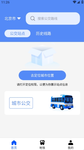 2、用户可以选择位置进行定位,一键搜索公交线路信息。