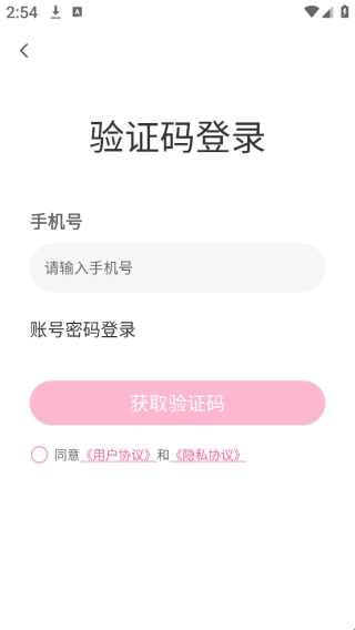 2、同意之后就可以直接跳转到登录的界面,只需要输入手机号和验证码即可。