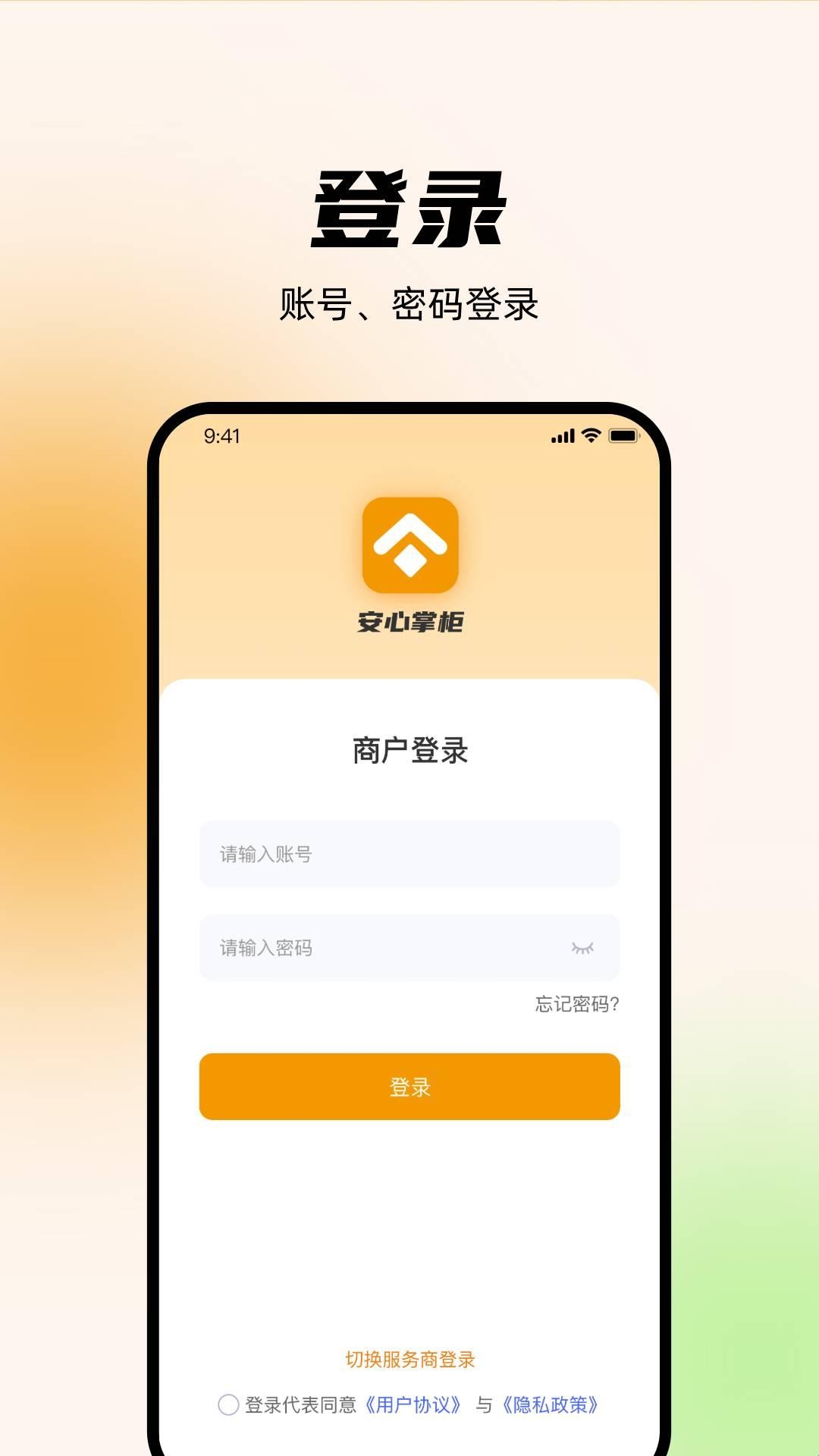 1、在安心掌柜APP首页,就能看到诸多功能,并能查看交易和收益数据;