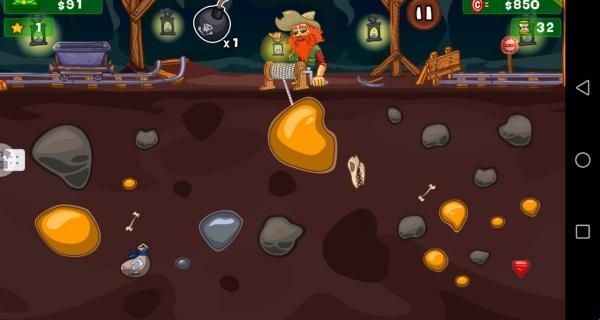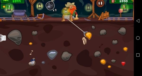 2、操控角色释放挖掘工具,下落到有宝石的地方进行挖掘。
