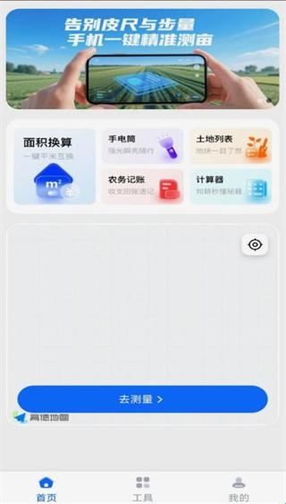 2、打开app,选择测亩仪功能,通过GPS定位或手动输入边界点,快速精准测量土地面积,结果一目了然。
