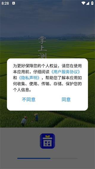 1、在手机上下载安装手机精准测亩仪app,仔细阅读用户协议后点击同意。