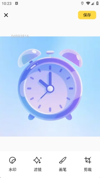 4、在图片编辑页面,可选择水印、滤镜、画笔和剪裁等功能进行图片处理。