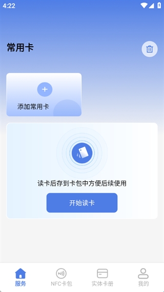 3、快速添加常用卡片,读卡之后可以在卡包中使用;