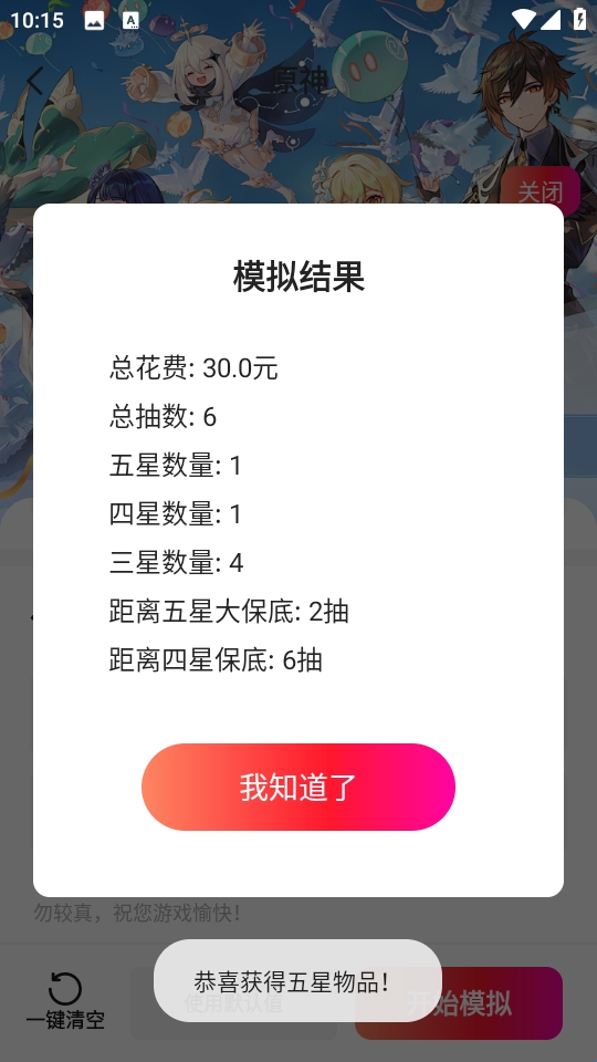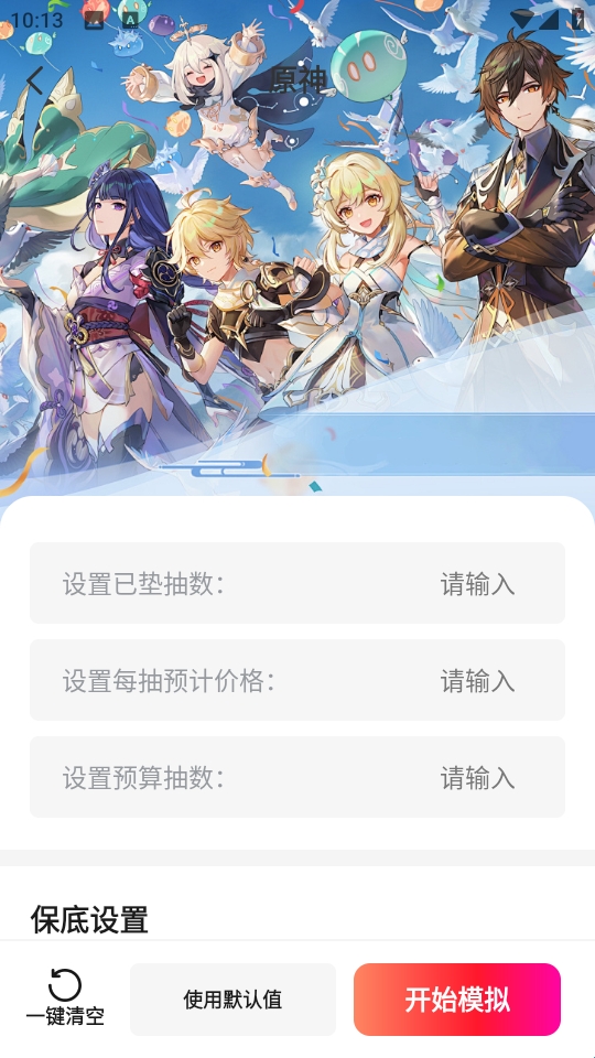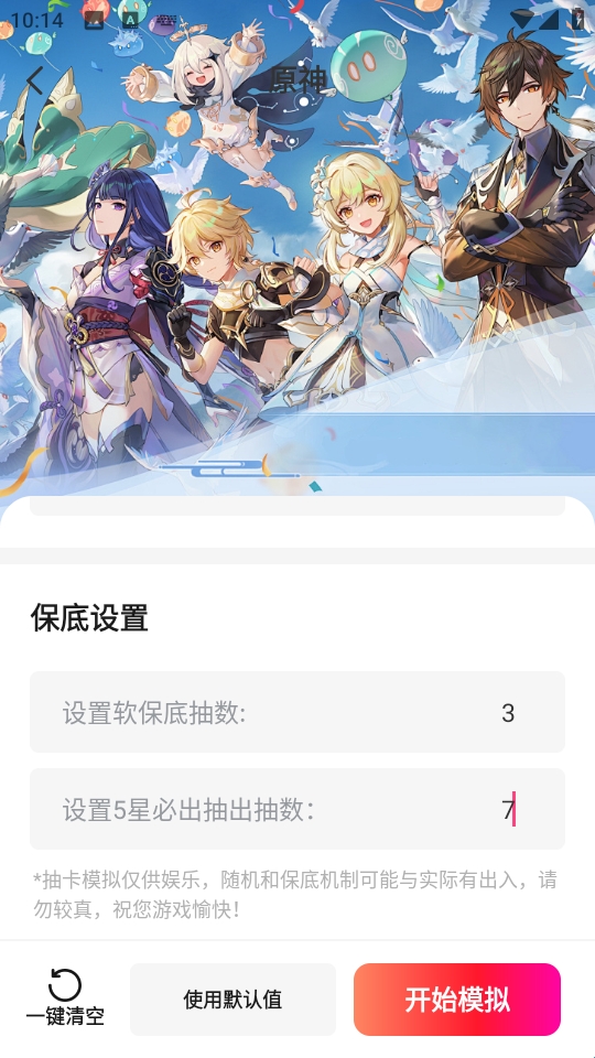 4、然后自定义设置好已抽抽数以及保底设置,点击“开始模拟”。