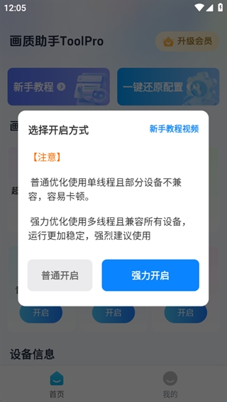 3、选择优化方案,根据需要选择普通开启或强力开启;