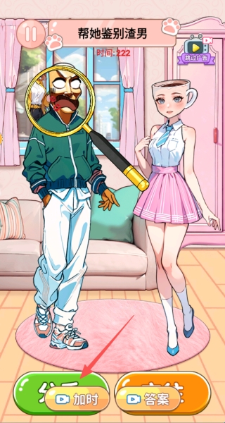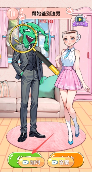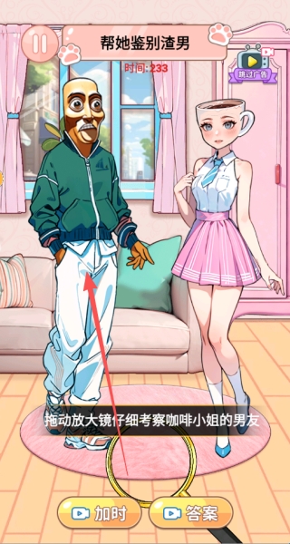 1、进入关卡,完成目标任务,帮助咖啡小姐姐鉴别渣男,拖动放大镜仔细观察它的男友。