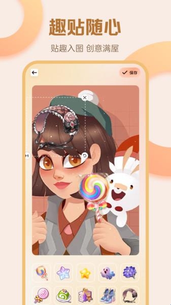 2、贴纸装饰:可自行选择喜欢的贴纸装饰,并能自定义贴纸的位置和大小,呈现精美效果;