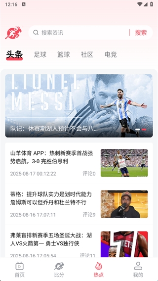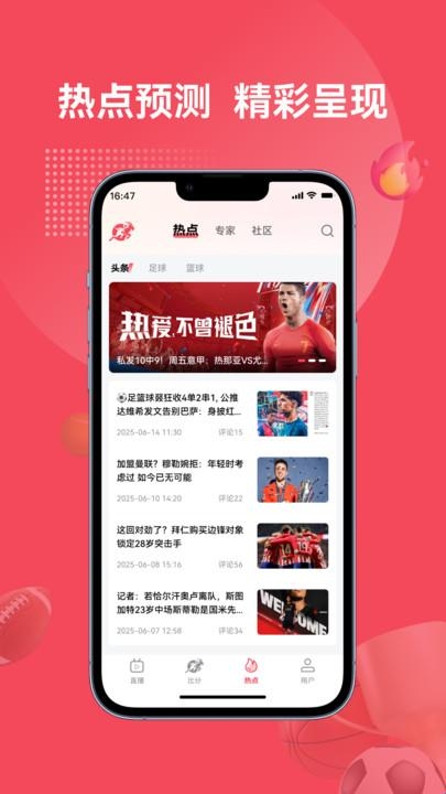 4、热点板块提供了当前的体育头条新闻,各种各样体育比赛赛事都会在这里更新。