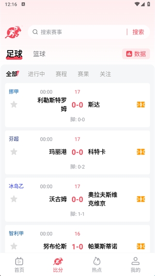 3、比分版块可以查看足球和篮球比赛的比分情况,或者你可以直接搜索赛事查看比分。