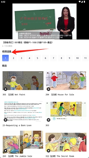 3、在选集页面可通过数字按钮选择具体章节进行观看视频学习讲解。