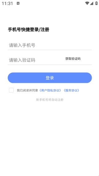 2、同意之后就可以直接跳转到登录的界面,只需要输入手机号和验证码即可。