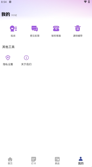 4、点击我的,提供投诉、意见反馈、联系客服、清除缓存等服务,帮助用户更好的使用软件。