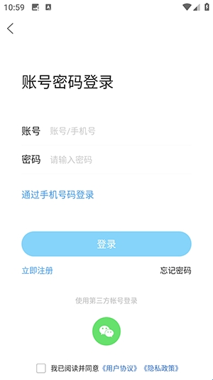 3、没有账号的用户,直接点击立即注册,输入手机号接收验证,完成注册。
