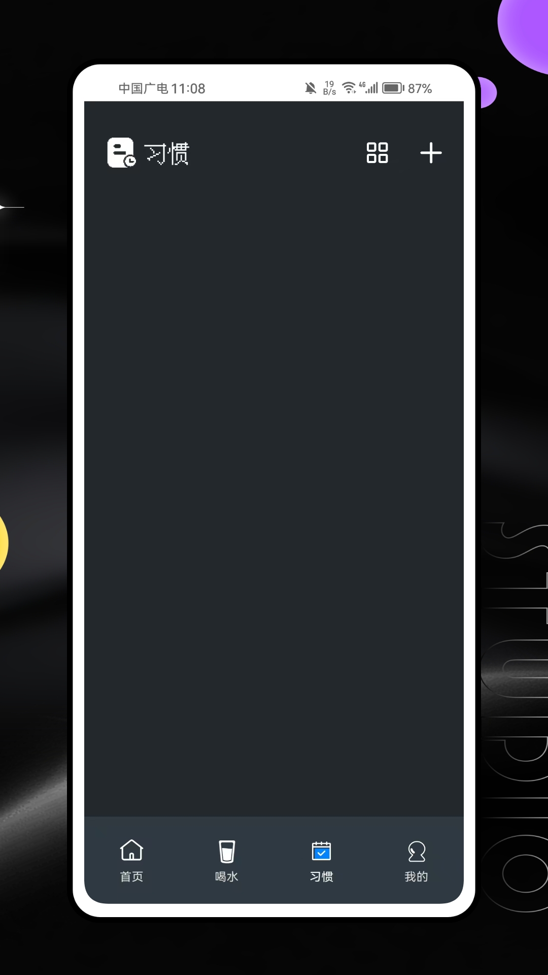 3、新增一个习惯记事功能,每天做了什么事都是可以在这里点击加号进行记录的哦,算是一个记事本一样的用处,好处就是随处可以记笔记!