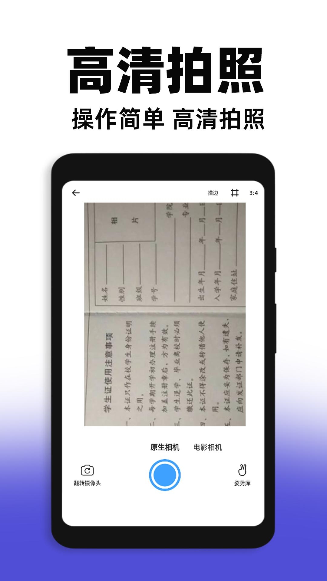 2、相机拍摄:使用相机就可让你实时拍摄,便捷拍摄相关的证件照,实时拍摄需要的照片。