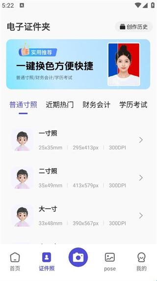 1、证件照制作:软件提供了证件照的制作,用户可以智能制作电子证件照,就可让你一键制作需要的证件照。