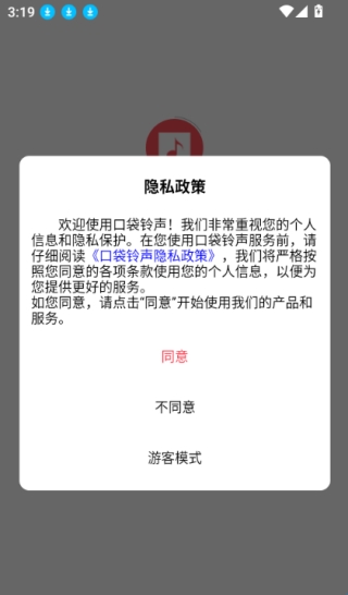 1、打开软件阅读用户隐私政策,点击同意即可进入首页。