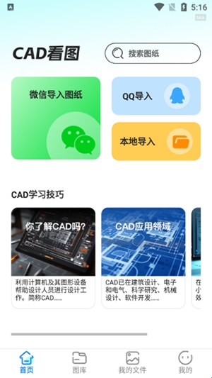 1、在软件首页提供多种导入方式,同时还拥有CAD学习技巧。