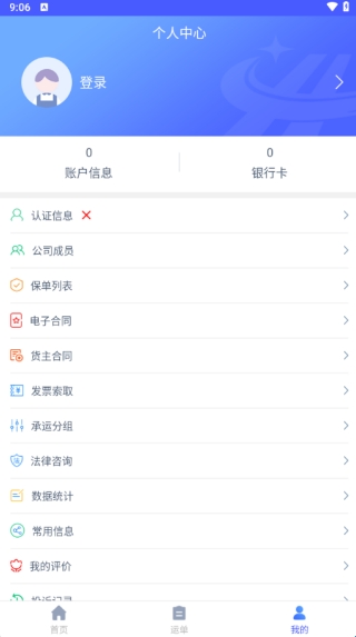 4、来到软件我的页面可使用认证信息,公司成员,保单列表等功能。