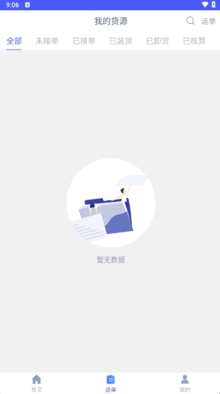 2、来到软件我的货源页面,可查看未接单、已结单、已装货、已卸货等功能。