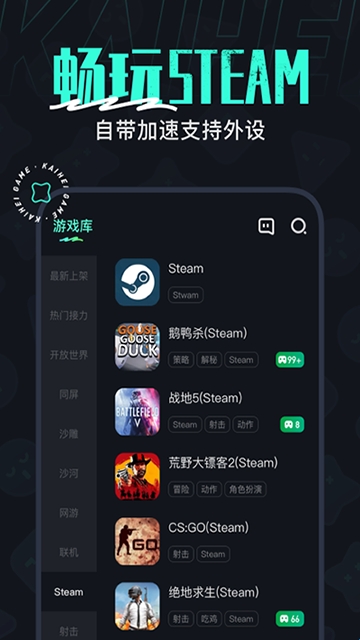 1、供超多热门3A大作、游戏社区、游戏工具,专门服务于游戏玩家的游戏应用。